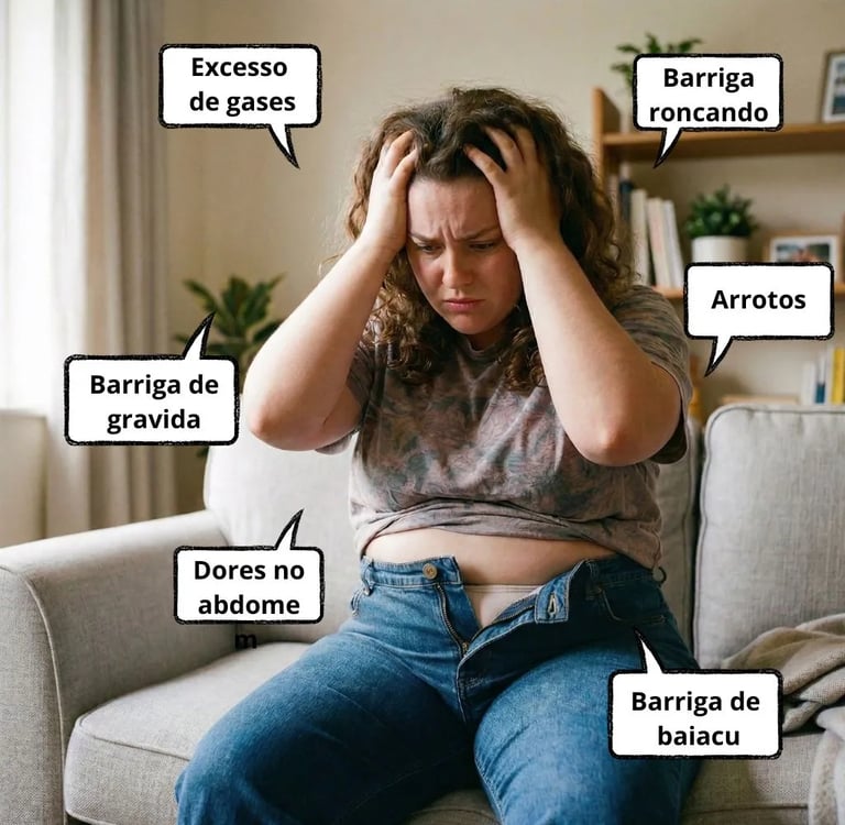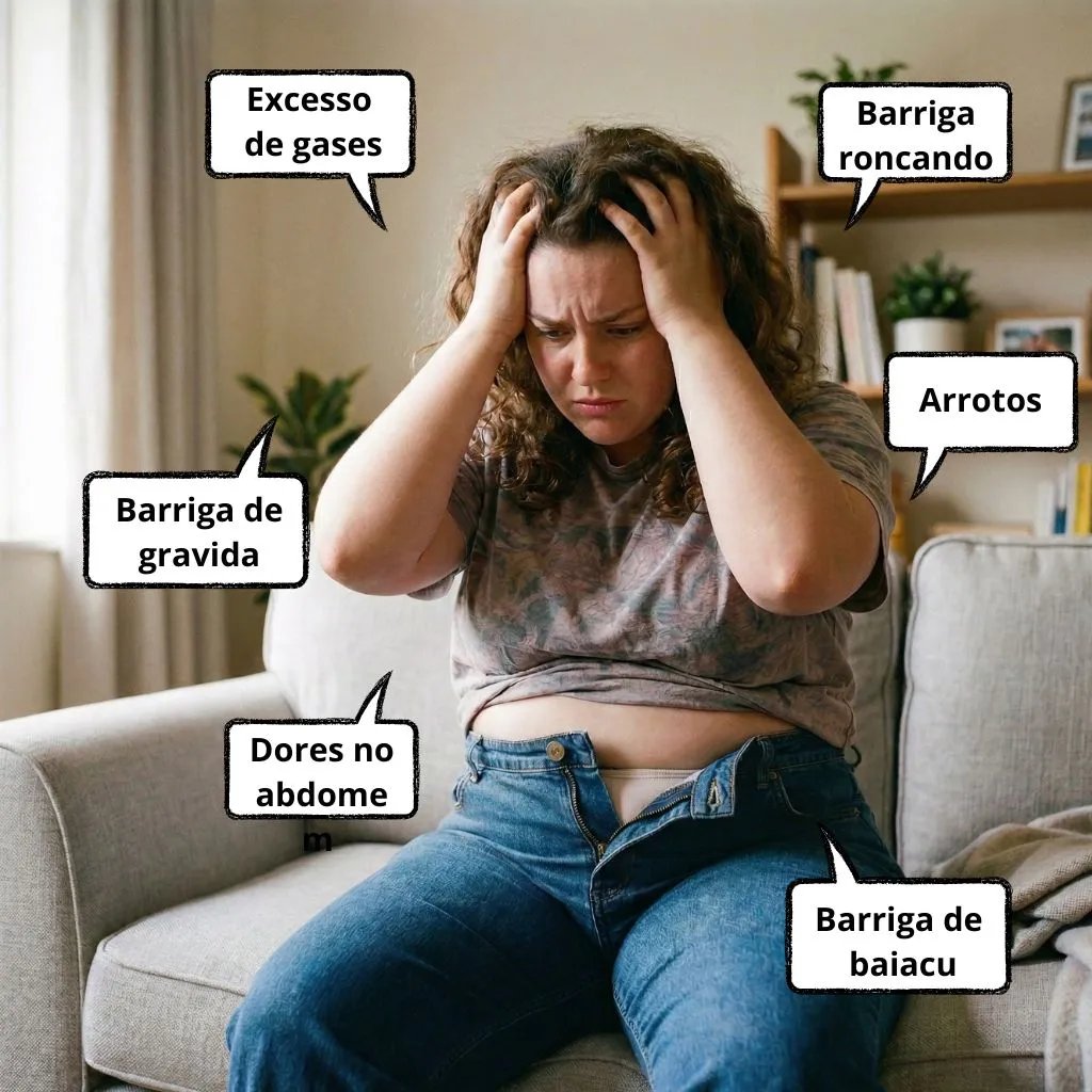 ✅ Não aguenta mais ter a barriga inchada, que deixam suas roupas apertadas e desconfortáveis.